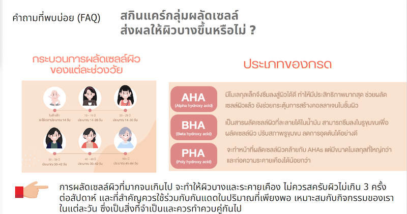 การผลัดเซลล์ผิวที่มากเกินไปจะทำให้ผิวบางและระคายเคือง จำกัดการขัดผิวไม่เกิน 3 ครั้งต่อสัปดาห์ และใช้ครีมกันแดดเสมอ เหมาะกับกิจกรรมประจำวัน